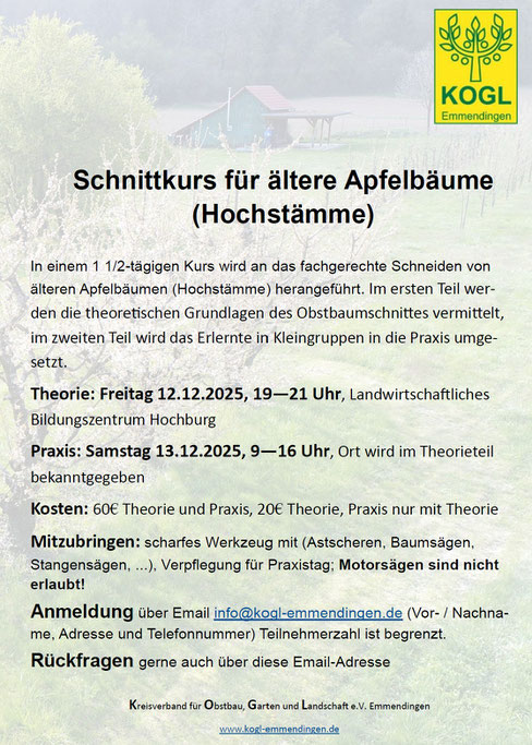 Einen erfreulichen Erfolg kann der Kreisverband Obstbau Garten Landschaft Emmendingen (KOGL) für sich verbuchen: Am vergangenen Samstag fanden sich gut 70 Teilnehmerinnen zum ersten Kurs „Frauen schneiden für Frauen“ ein. Instruktorinnen weihten Frauen im Alter von 15 -70 Jahren in die Grundkenntnisse zum Schneiden von Obstbäumen ein, die in kleinen Gruppen umgesetzt wurden. „Die Theorie zu hören ist eine Sache, diese gleich in die Praxis des Obstbäume Schneidens umzusetzen, eine andere“, lobte eine Teilnehmerin den Kurs. Nach drei Stunden verließen die Teilnehmerinnen sichtlich zufrieden den Übungsgarten des KOGL in Kenzingen. „Dass es für ein solche Veranstaltung einen Bedarf gibt, haben wir geahnt“, so Initiator Manfred Ruf, der im Vereinsvorstand für den Lehrgarten zuständig ist. „Aber mit so einer so großen Nachfrage haben wir nicht gerechnet“. Frauen würden an das Schneiden von Bäumen oft auf andere Weise herangehen als Männer und lassen sich von deren eher forschen Vorgehens leider oft verunsichern, so eine der Instruktorinnen. „Unter sich fühlen sich Anfängerinnen offenbar wohler“. Die Stimmung am Samstag sei sehr entspannt gewesen. Zum Erfolg trug sicher auch der herrliche Sonnenschein bei, der die anfangs frostigen Temperaturen im Laufe des Vormittags abmilderte. Vereinsvorsitzender Lothar Herb dankte den fünf Instruktorinnen, denen der Erfolg der Veranstaltung zu verdanken ist, ausdrücklich. Der Wunsch der Teilnehmerinnen, eine solche Veranstaltung zu wiederholen, ist im Vereinsvorstand angekommen.